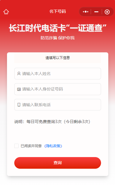 长江时代推出名下号码查询服务,让您随时掌握名下号码情况,守护通讯安全!