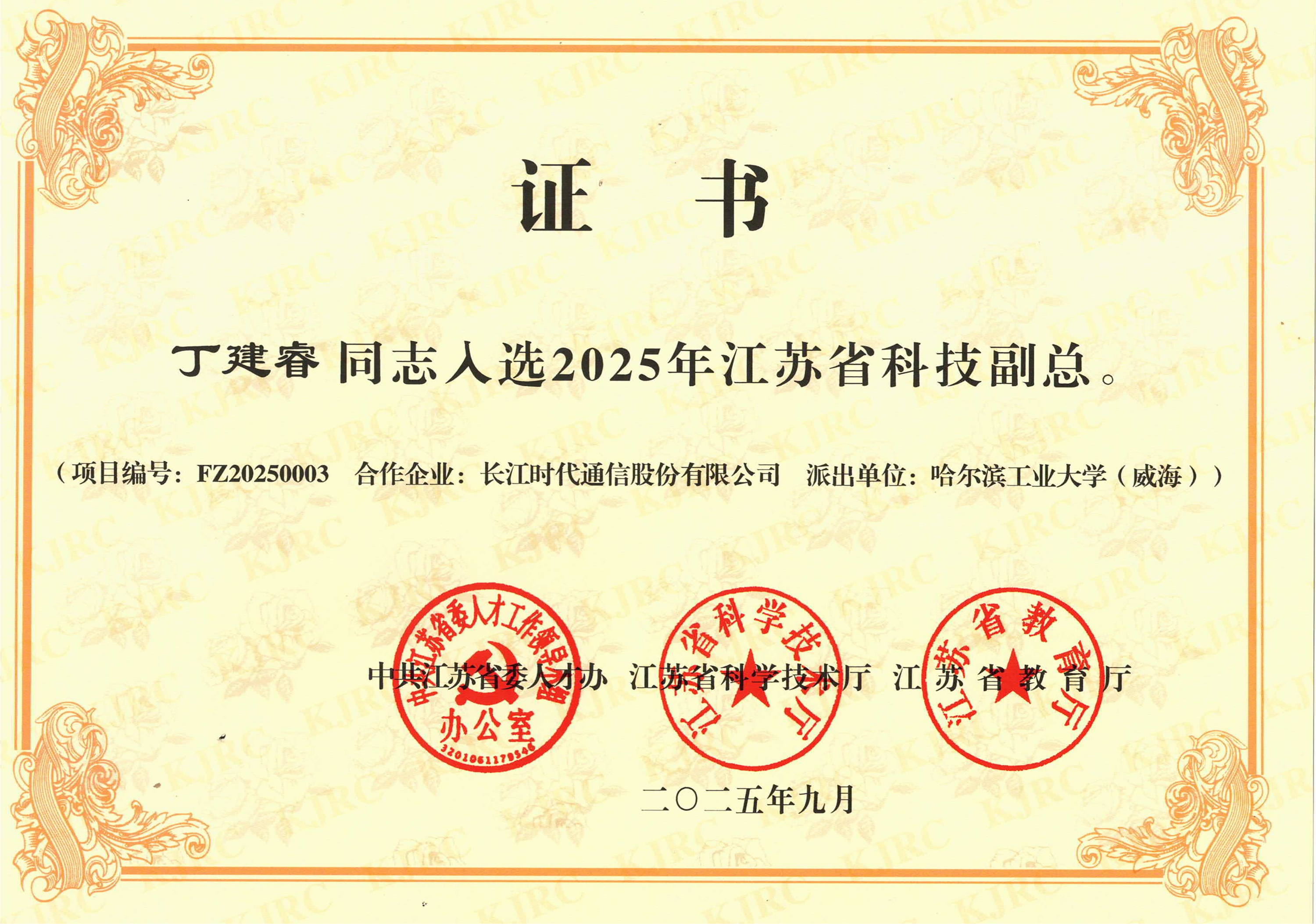 助力长江时代产学研融合 | 哈工大(威海)丁建睿教授当选江苏省科技副总